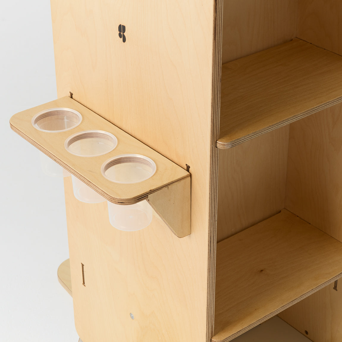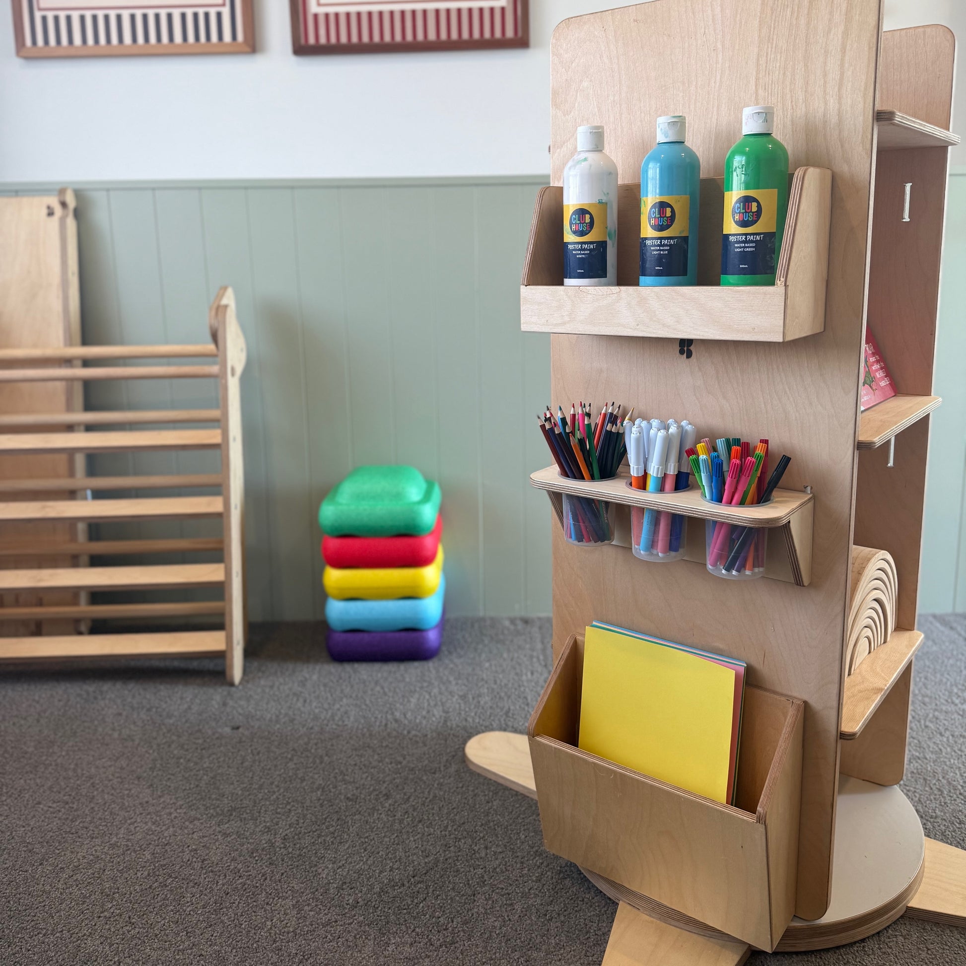 The Play Systems Pen Pot Holder is a simple, functional accessory designed for both the Rotating Bookcase and the MultiBoards. It’s the perfect spot for pencils, crayons, paintbrushes, or other small creative tools, keeping everything visible, organised, and within easy reach for little hands.
