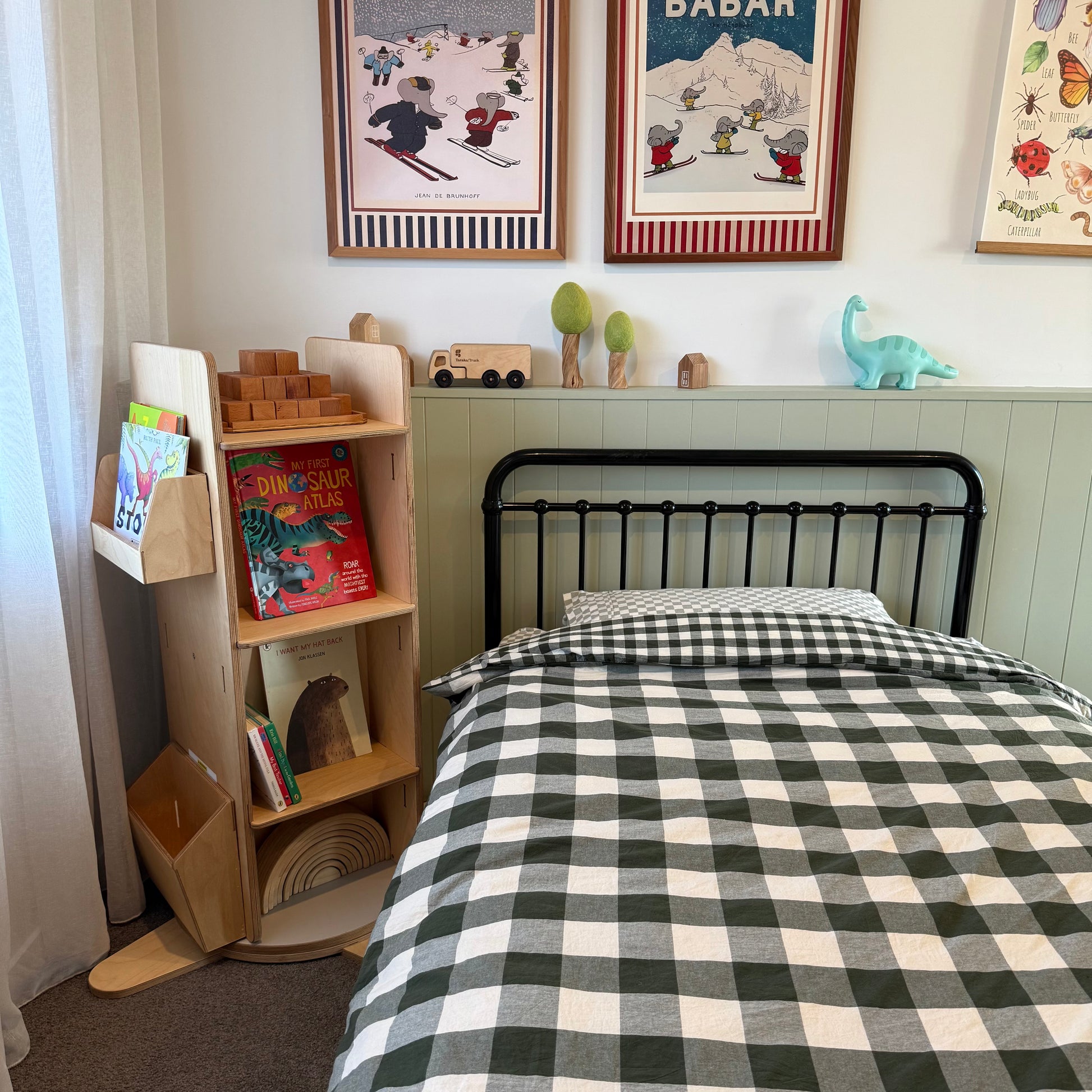 Made in Christchurch from durable birch plywood and finished with a natural hard-wax oil, it’s built to last through years of stories and play. The optional modular accessories include a display shelf, magazine holder, and pen pot holder. These easily attach to suit your child’s interests and the way they play, learn, and create.